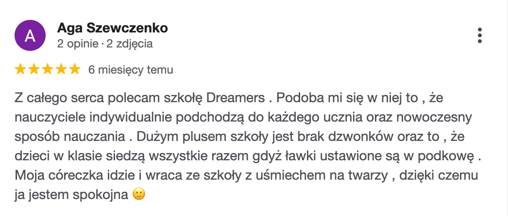 Zdecydowanie mniej niż w szkole publicznej ;) Nasze klasy są maksymalnie 16-osobowe.