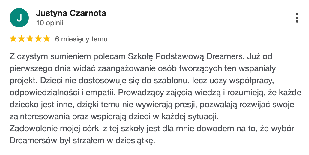 Dreamers otwieramy już o 7:15, a zamykamy o 16:15. W tym czasie dzieci otrzymają najlepszą opiekę i rozwój.